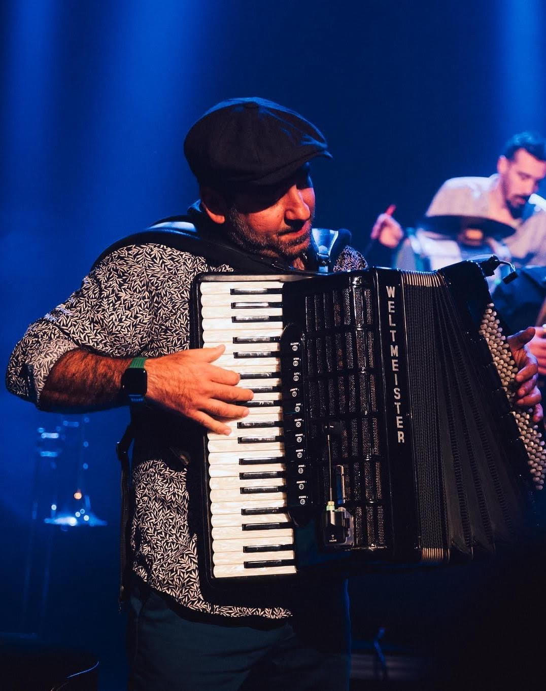 Adrian Iordan, accordéoniste Tsigane de Roumanie, originaire d’une famille de musiciens est autant un virtuose de l’accordéon qu’un grand pédagogue. Depuis vingt ans il enchaîne les projets tsiganes et klezmer (Haidouti orkestar, Le Petit Mish-Mash, Lautari de Bucarest, Slonovski Bal, Finzi Mosaique Ensemble, Klezmer Kaos, Mozaik Klezmer…).
